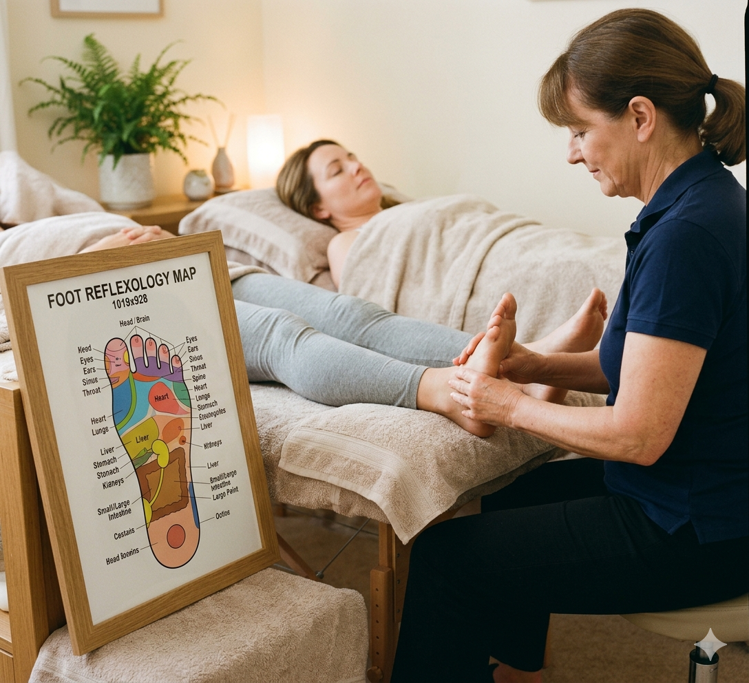 Improve body balance and relaxation through therapeutic foot reflexology massage.